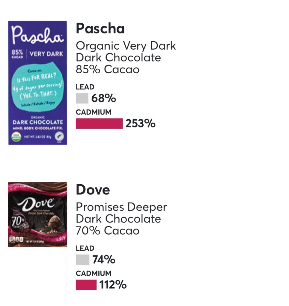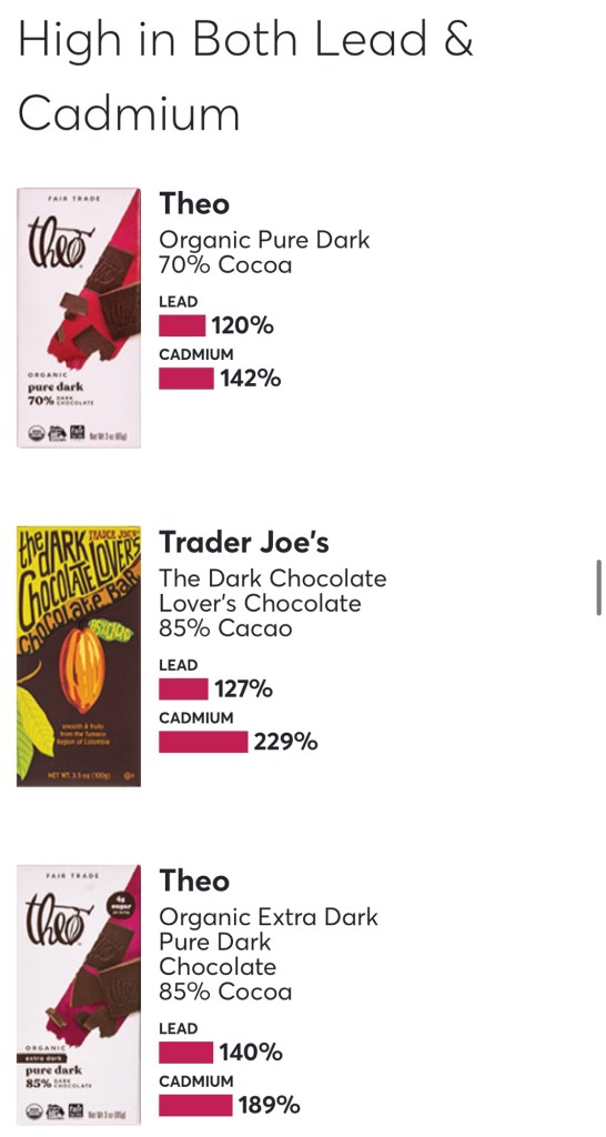 - Stop eating dark chocolate and cacao from brands I know are toxic such as Food for Life and Ghirardelli