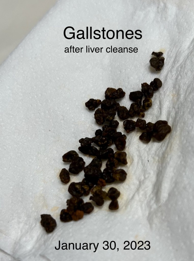 In 2021, I experienced gall bladder pain after eating fatty foods, so I began vegetable juicing using the AMZCHEF juicer (the auger breaks about every six months, but it’s a good starter juicer). I completed two liver/gall bladder cleanses, and I passed hundreds of gall stones. See picture below of my most recent liver cleanse result.