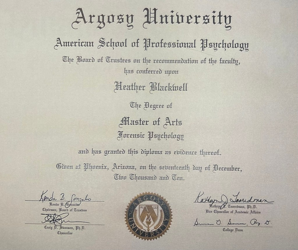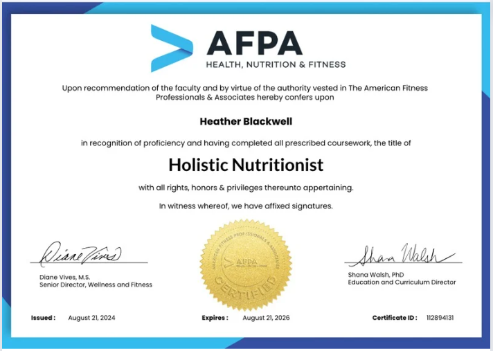 With 20+ years’ experience in holistic mind and body health, Heather’s Diplomas and Certifications Page offers a comprehensive overview of Heather’s educational achievements and professional qualifications toward holistic health. The page showcases Heather’s commitment to continuous learning and expertise in her field. In addition to a master’s degree in maladaptive behavioral psychology, Heather also has 64 continuing education credit hours in Marriage and Family Therapy to include psychopathology, personality theory, human development lifecycle, addiction, sexuality/gender theory, diversity and inclusion counseling, mediation, family origins theory, counseling ethics, couples/marital therapy, assessments/tests as well as a certification in Holistic Nutrition. Business related courses are Talent Acquisition and Workforce Planning; and Leading and Managing Workplace Learning.