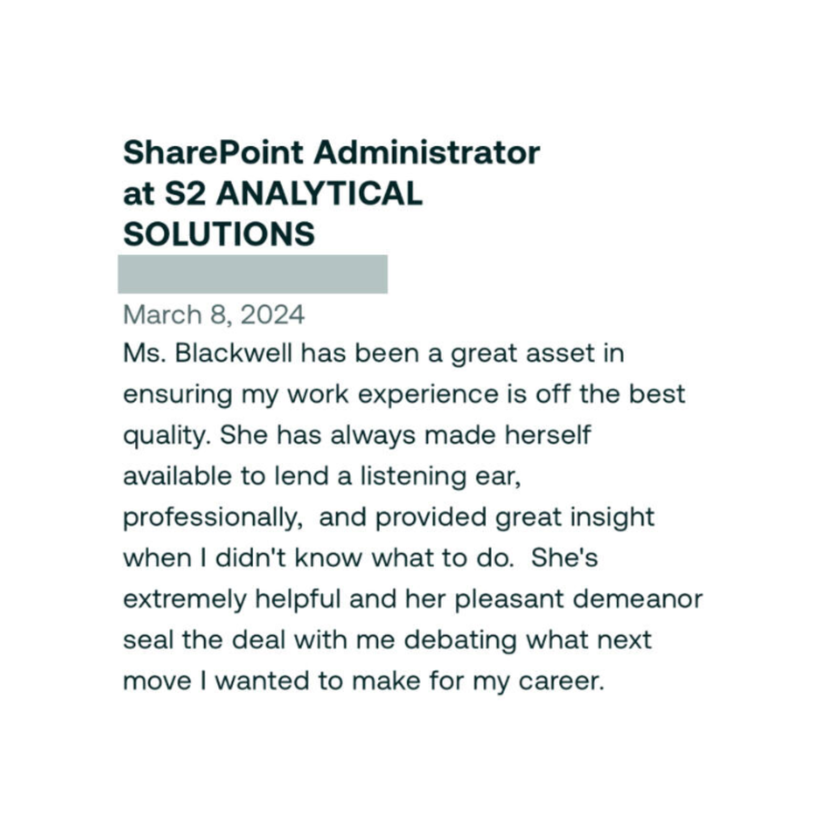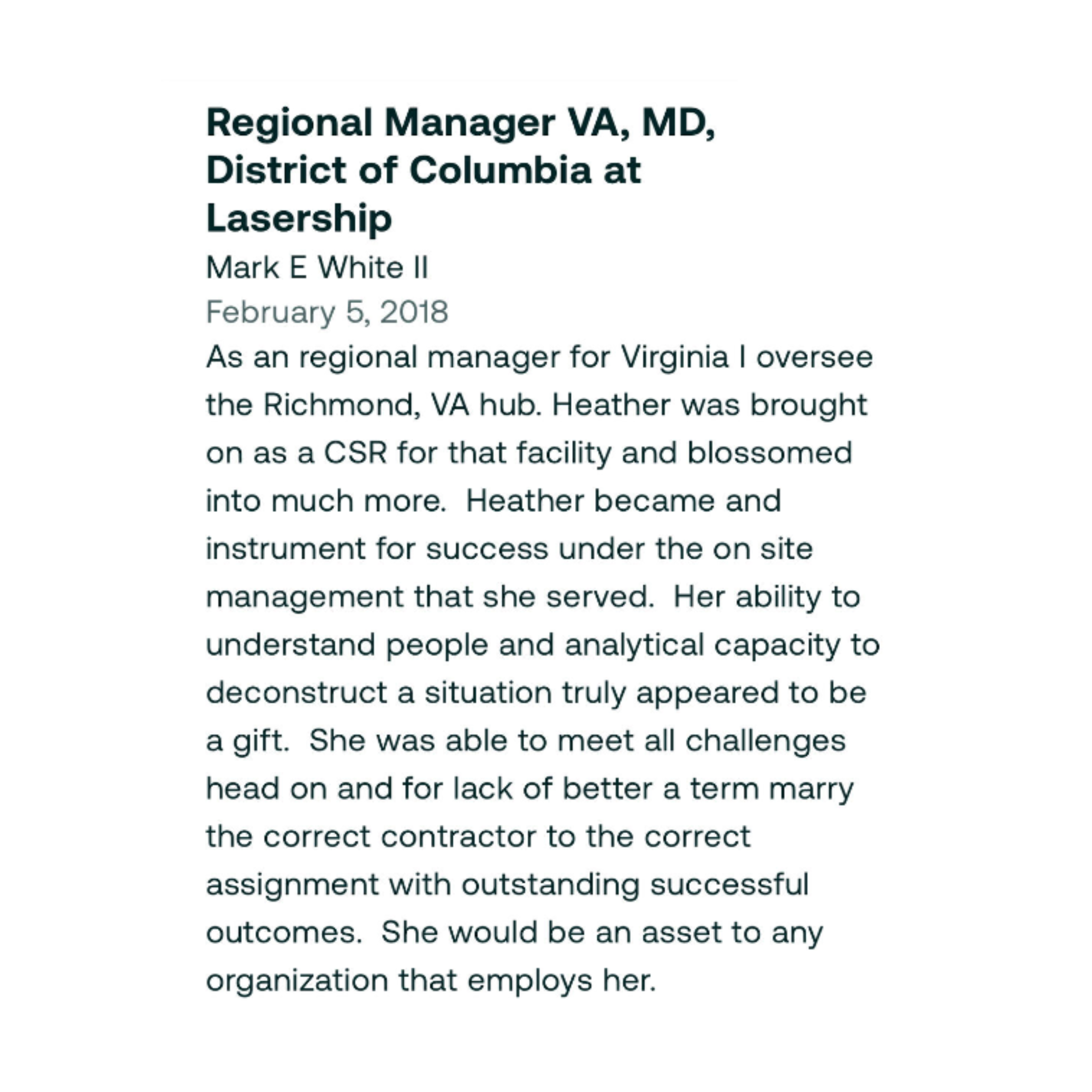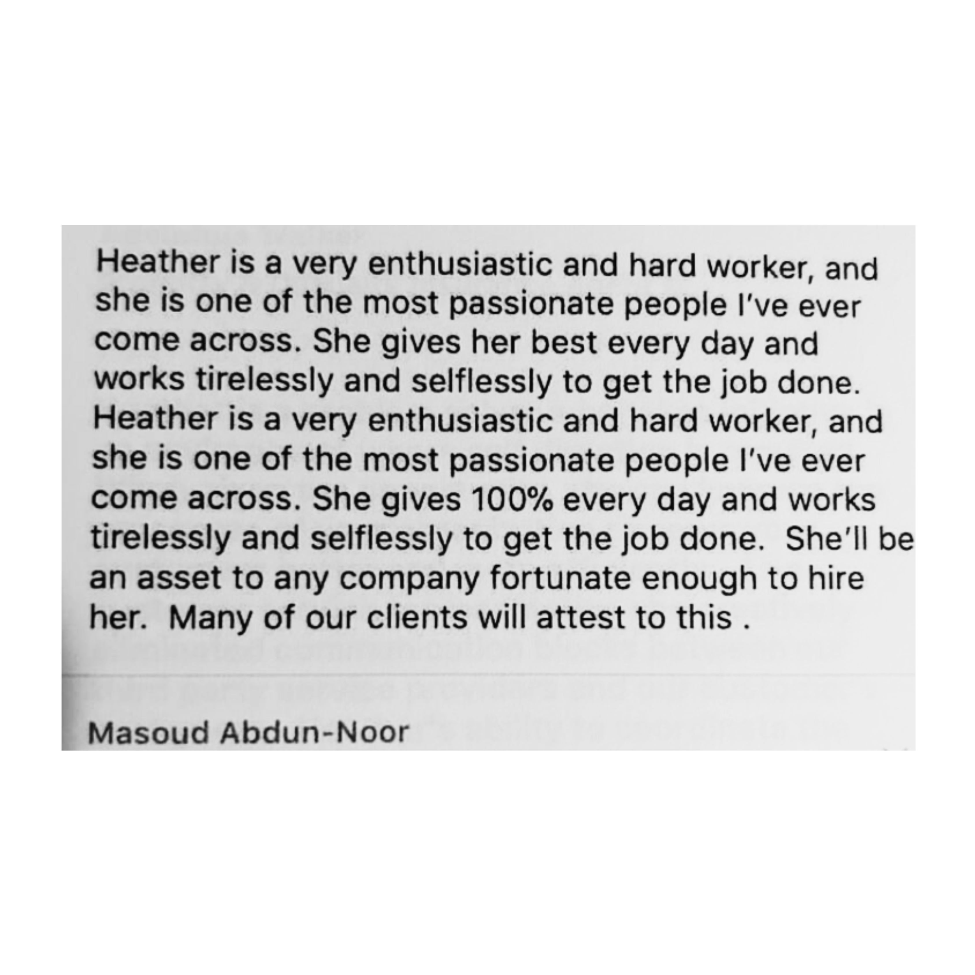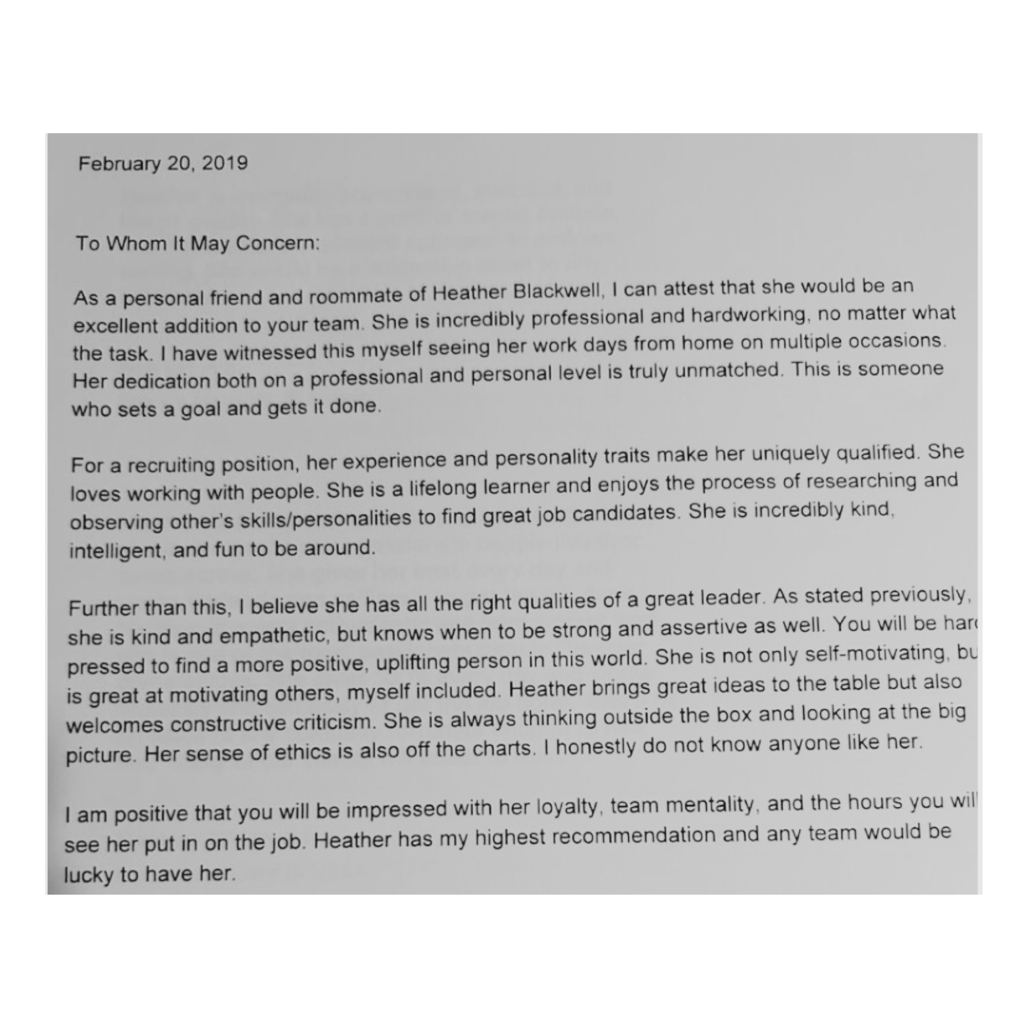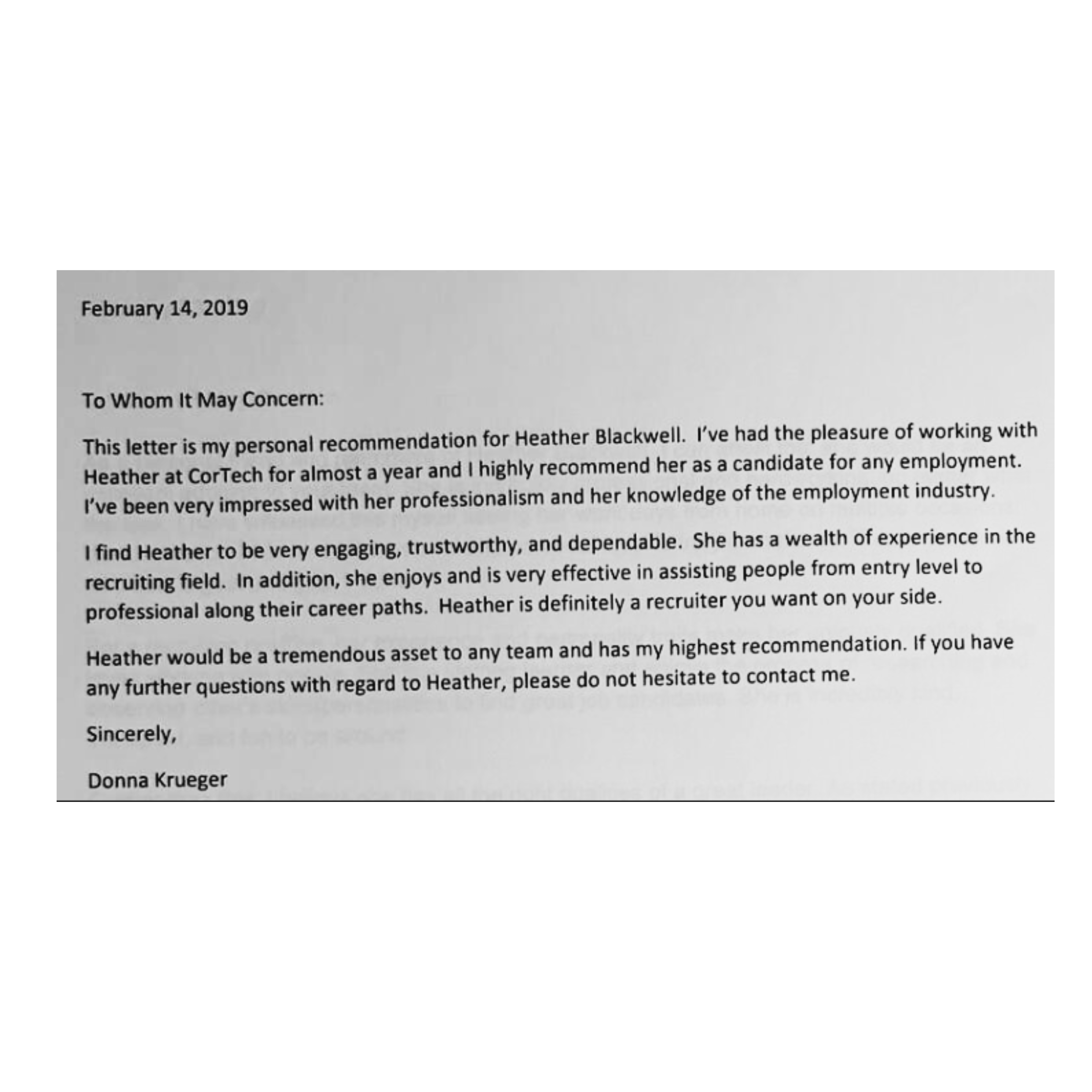 These are the professional references of Heather Blackwell, a highly skilled and experienced individual in multiple career fields, who has developed a strong network of contacts to vouch for her expertise and accomplishments.
